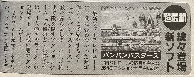 -- July 1994 -- the NEOGEO Guide Book publishes an article with a screenshot of Bang Busters.