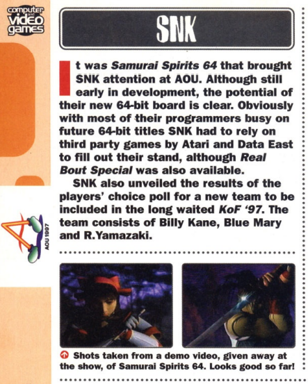 -- May 1997 -- CVG Magazine (UK) alludes to Data East's game at the 1997 AOU show.