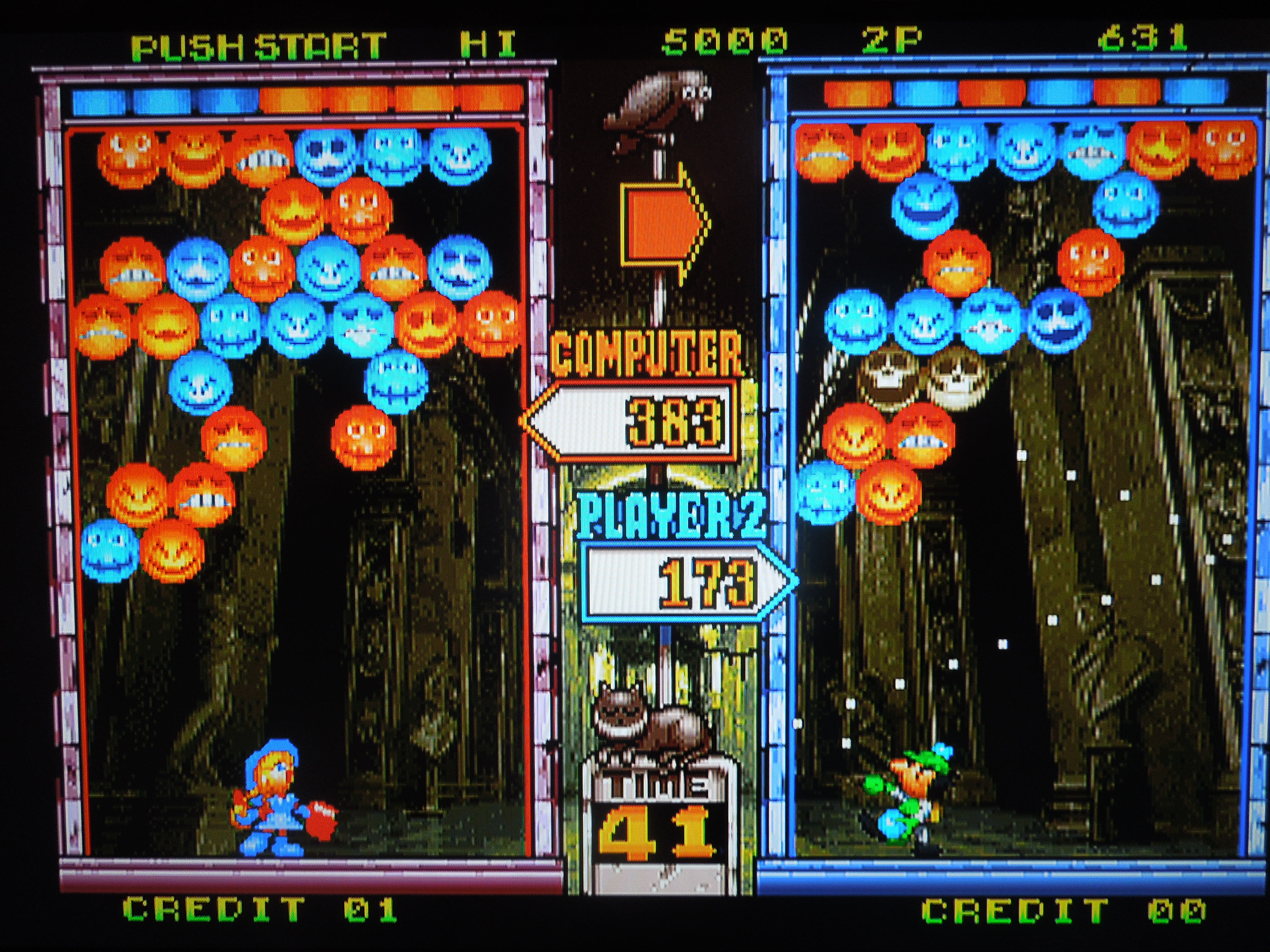 combines the fast action of an Arkanoid style game, with the quick thinking of a Bust-A-Move