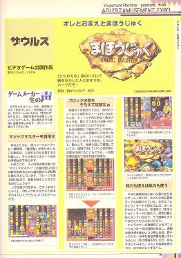 -- March 1997 -- Gamest Magazine #171 publishes an article on Magic Master with screenshots.